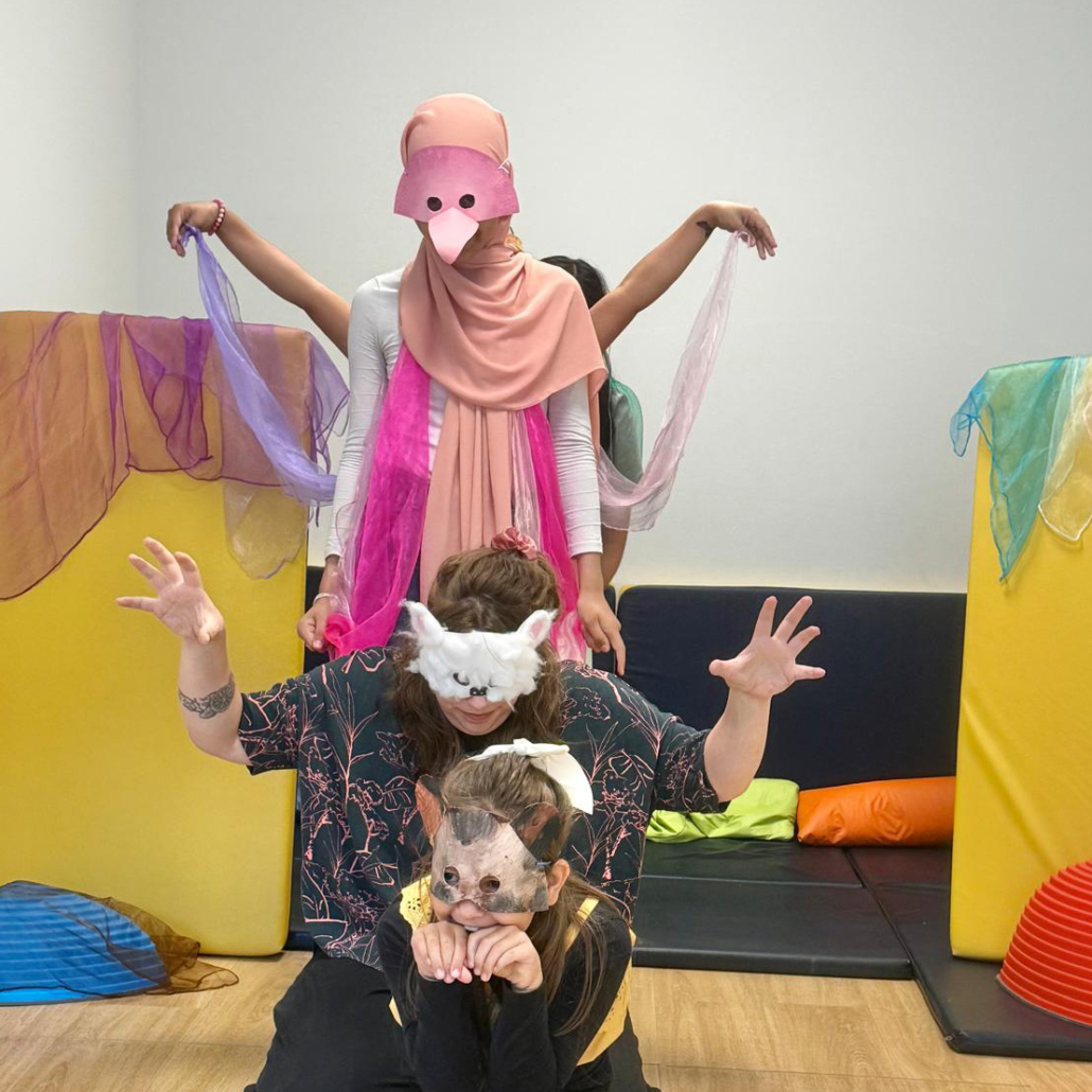 Das Kind lernt und erlebt durch Bewegung, der ganze Körper wird im Theaterspiel mit einbezogen. Tanz- und Bewegungsspiele laden auf spielerische Weise zur Mobilisierung ein und der körperliche Ausdruck wird gestärkt. Die feinmotorische Entwicklung wird z.B. durch Fingerspiele und das Basteln von Requisiten gefördert.